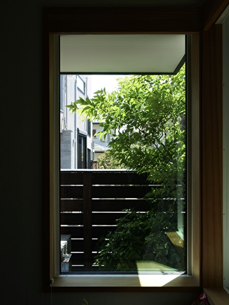こちらは隣地の桜を楽しむ窓。敷地内にはナンテンを前景で控えめに。