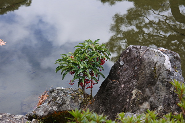 下に向いて実をつけるためか、ナンテンやセンリョウに比べて切花としての流通も少ないようです。
