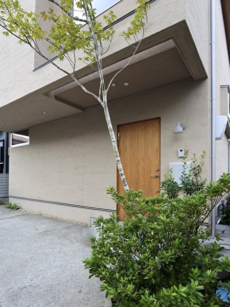 周囲の造園が進み、その存在も軽やかに昇華して、ぬくもりのある前庭に仕上がりました。