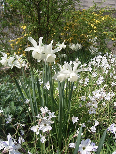 開花期の違う幾種類かのスイセンを植えておくと、冬と春が交錯しながら酷寒の季節があっという間に過ぎていく。
