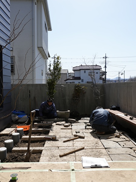 植栽も石工事も高崎への往復を含めて3日の工程で納めてくれるのは、いつもの職人さんたちとのコンビネーションならでは。