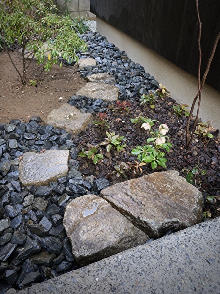 石の狭間など芝の手入れが面倒なところですが、むしろそれを積極的に楽しみたいというお施主さんです。