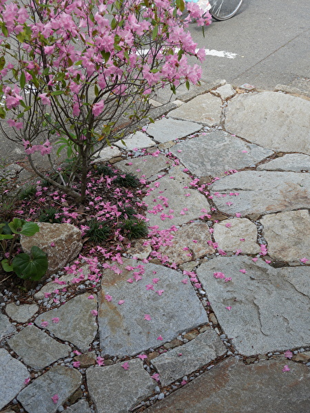 春一番(ハルイチバン)という早咲のツツジを北の入口と南のポイントに2本入れてます。